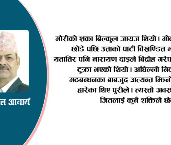 ‘अँ, भन त घनश्याम ।’ ‘दाइ हजुरको शंका सहि ठहरियो है ।’ ‘के भयो ? पक्का होनी ?’ ‘हन्ड्रेड पर्सेन्ट, कोर टिमबाटै बुझेको दाइ । भाते भतुवाले नै पाउनेमा पक्का भएछ ।’ ‘ठीक छ, यो खबर अहिले बिल्कुल कतै नचुहाउनु । अनि कहिले…