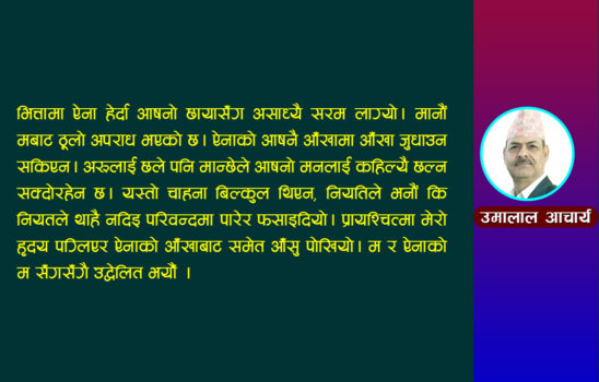 ठुल्दाजु मोहनसिंह र माल्दाजु रतन सिंहलगायत हामी तीन दाजुभाइ पिताजीको क्रियाकाजको लागि कोराबास बसेका थियौँ । आमा स्वर्गेवास भएको तीन वर्ष…