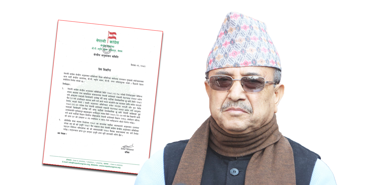 सुर्खेत: नेपाली कांग्रेसले पार्टीका पूर्वकार्यवाहक सभापति पूर्णबहादुर खड्कालाई कारबाहीको प्रक्रिया अगाडि बढाएको छ । बुधवार बसेको कांग्रेस अनुशासन समितिको बैठकले खड्कालाई…