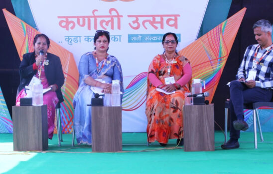 सुर्खेत: कर्णाली उत्सवको सातौं संस्करण अन्तर्गत सोमवार ‘महिला मुखिया’ शीर्षकको सत्र सञ्चालन गरिएको छ । उक्त सत्रमा वक्ताका रूपमा सहभागी जनप्रतिनिधिहरूले समाजको वास्तविक रूपान्तरणका लागि महिलाहरू निर्णायक पदमा पुग्नुपर्नेमा जोड दिएका छन् । सुर्खेतको भेरीगंगा, बर्दियाको ठाकुरबाबा र चितवनको गैंडाकोट नगरपालिकाका उपप्रमुखहरूले आफ्ना अनुभव सुनाउँदै चुनौतीपूर्ण अवस्थामा पनि न्याय र विकासका लागि अडिग रहेको बताए । भेरीगंगा नगरपालिकाकी उपप्रमुख धनसरा बोहोराले शिक्षा, स्वास्थ्य र महिला अधिकारलाई आफ्नो मुख्य एजेण्डा बनाएको बताइन् । ‘महिलाहरूलाई आर्थिक रूपमा सम्पन्न नबनाइ समाज बदलिँदैन,’ बोहोराले भनिन्, ‘न्यायिक समितिमा काम गर्दा धेरै दबाब आए पनि सधैँ न्यायको पक्षमा उभिएकी छु । अबको निर्वाचनमा महिलाहरूले सहायक मात्र…