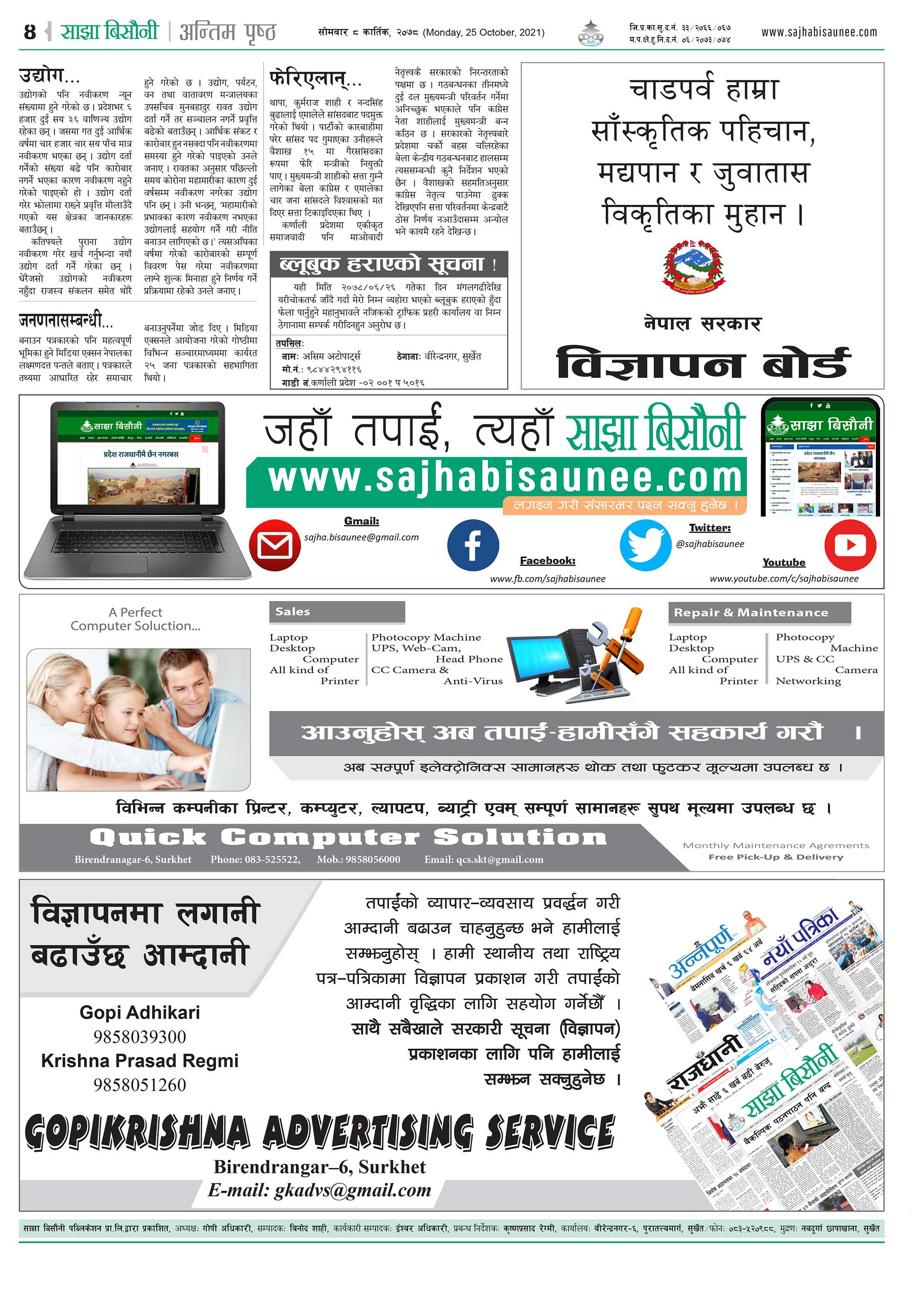 आजको इ–पेपर २०७८-०७-०८