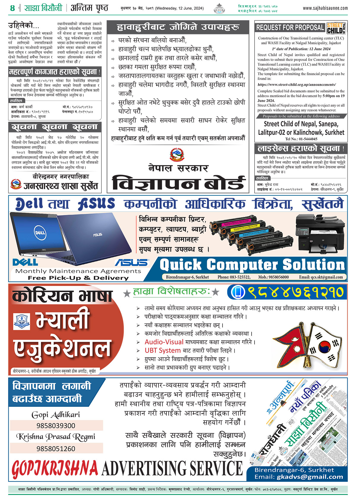 ३० जेष्ठ २०८१, बुधबार ०९:२५