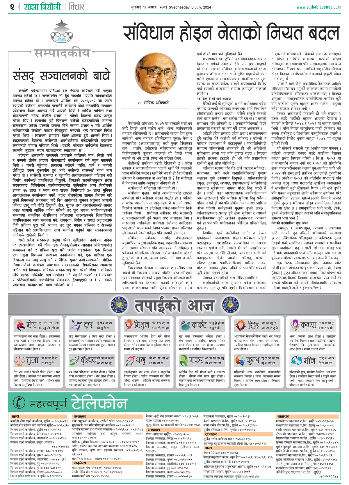 आजको इ–पेपर २०८१-०३-१९