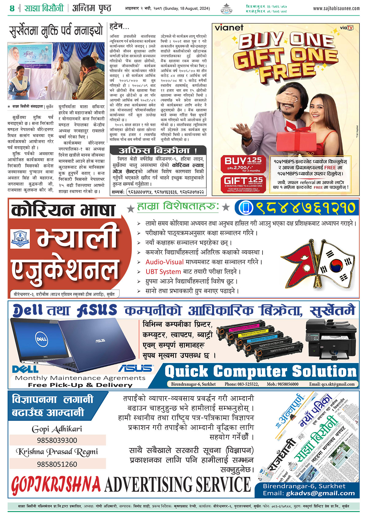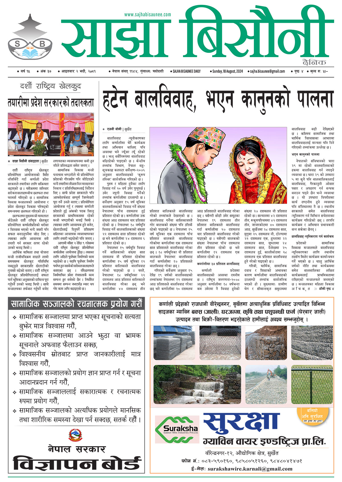 प्रकाशित मितिः   २ भाद्र २०८१, आईतवार १६:०८