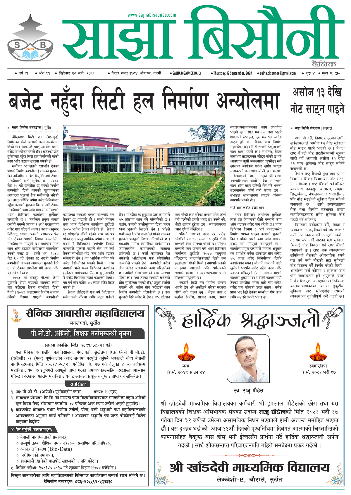आजको इ–पेपर २०८१-०५-२७