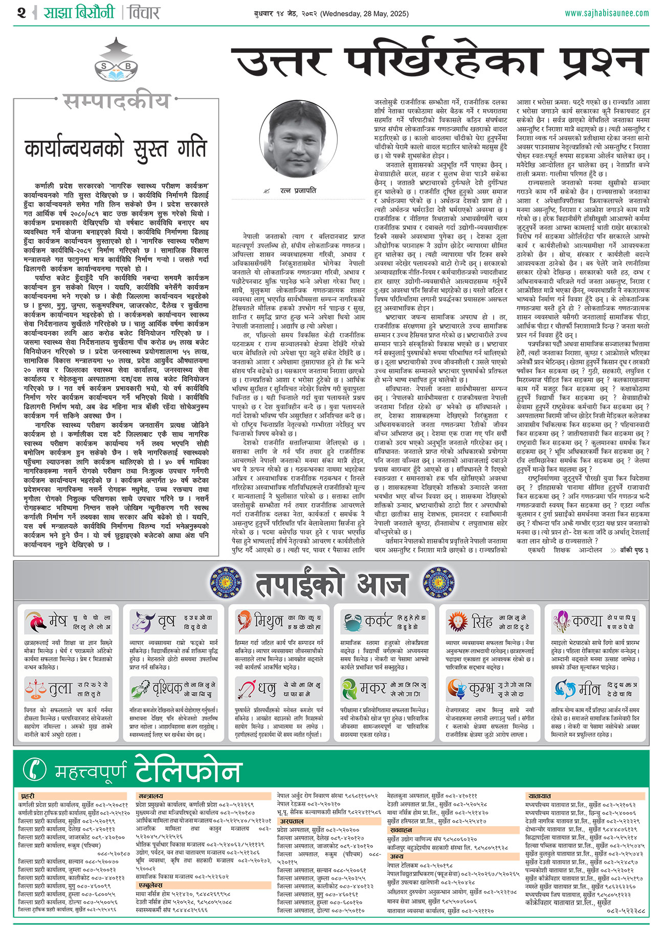 आजको इ–पेपर २०८२-०२-१४