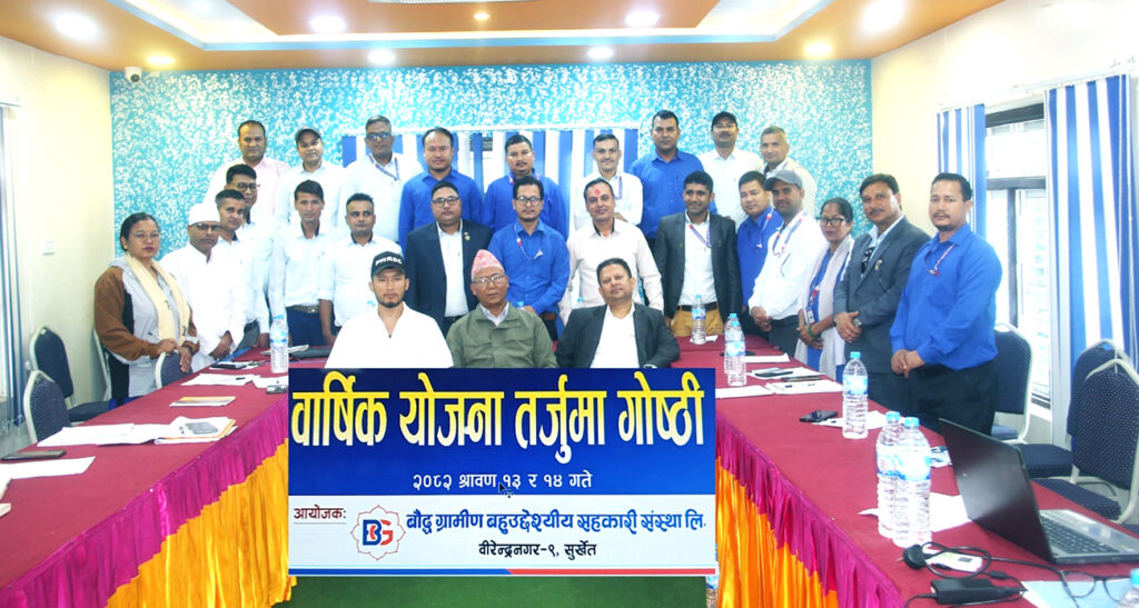 सुर्खेत: बौद्ध ग्रामीण बहुउद्देश्यीय सहरकारी संस्था लिमिटेडले आयोजना गरेको दुई दिने योजना तर्जुमा गोष्ठी वीरेन्द्रनगरमा सम्पन्न भएको छ । मंगलवारदेखि सुरु भएको गोष्ठी बुधवार समापन गरिएको हो ।