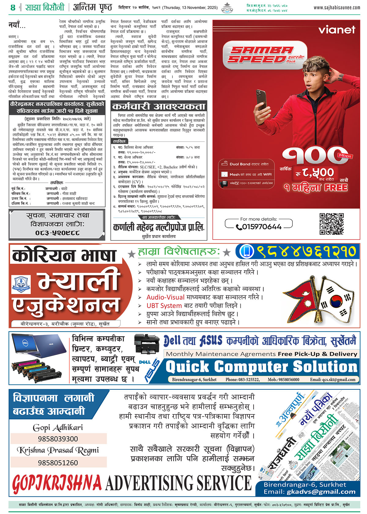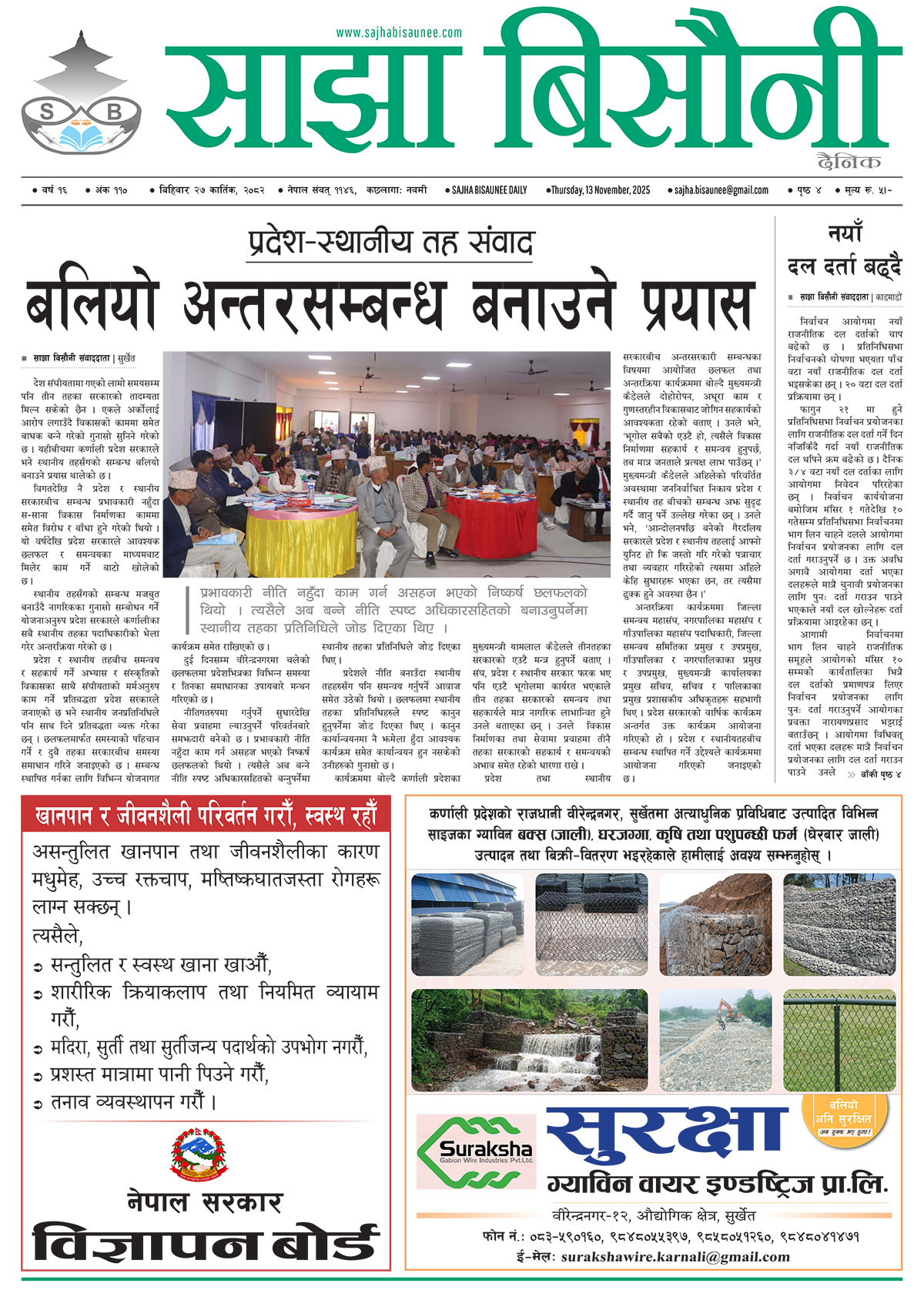 प्रकाशित मितिः   २७ कार्तिक २०८२, बिहीबार ११:५९