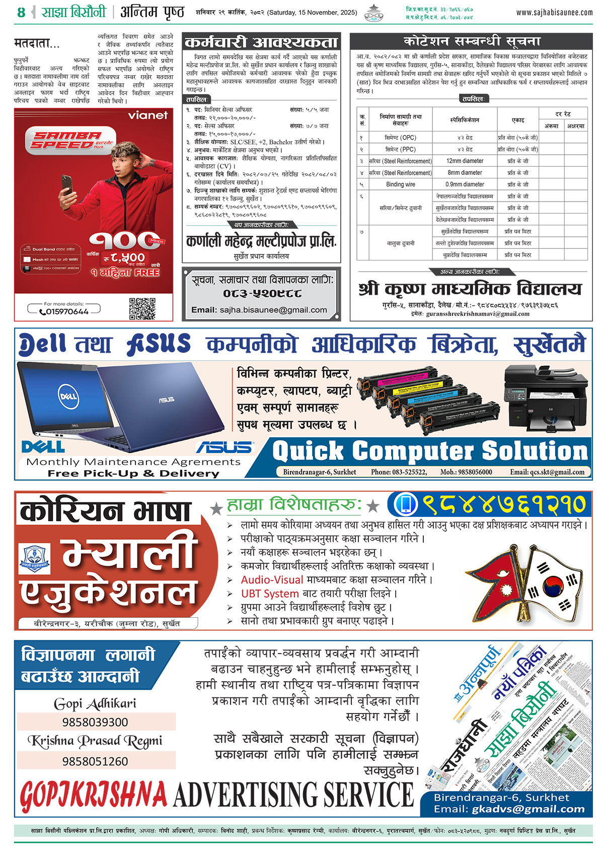 २९ कार्तिक २०८२, शनिबार १२:१२