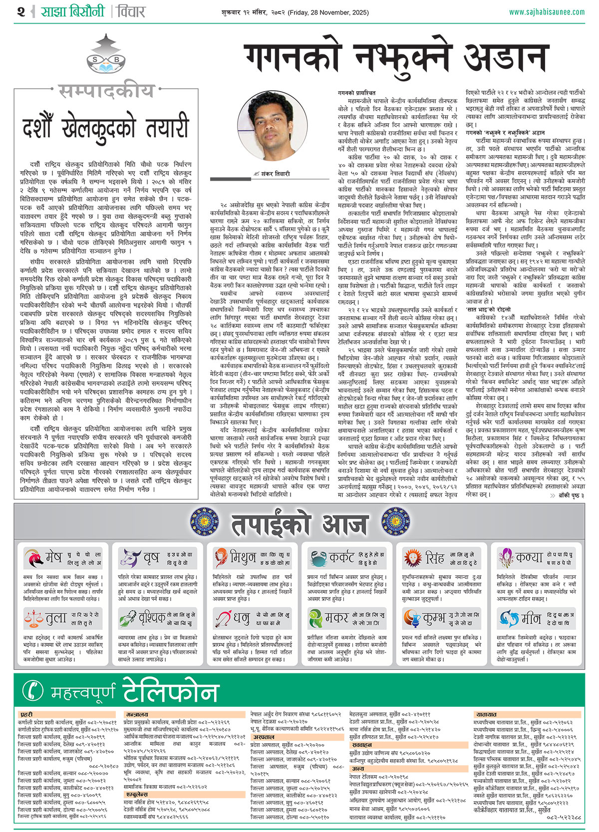 आजको इ–पेपर २०८२-०८-१२