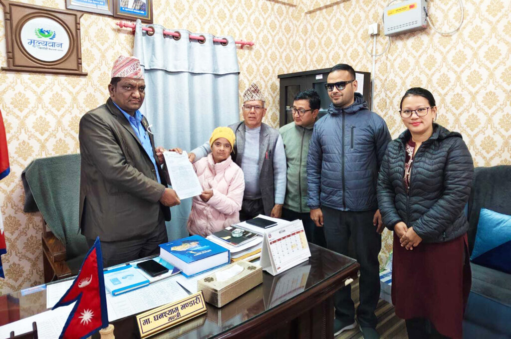 सुर्खेत: अपाङ्गतामैत्रीनीतिनिर्माण गर्न कर्णालीप्रदेश सरकारलाई ध्यानाकर्षण गराइएको छ । अपाङ्गमहासंघ नेपाल कर्णालीप्रदेश कार्यालयले सोमवार सामाजिकविकासमन्त्री घनश्याम भण्डारीलाई ध्यानाकर्षणपत्र बुझाइएको हो ।