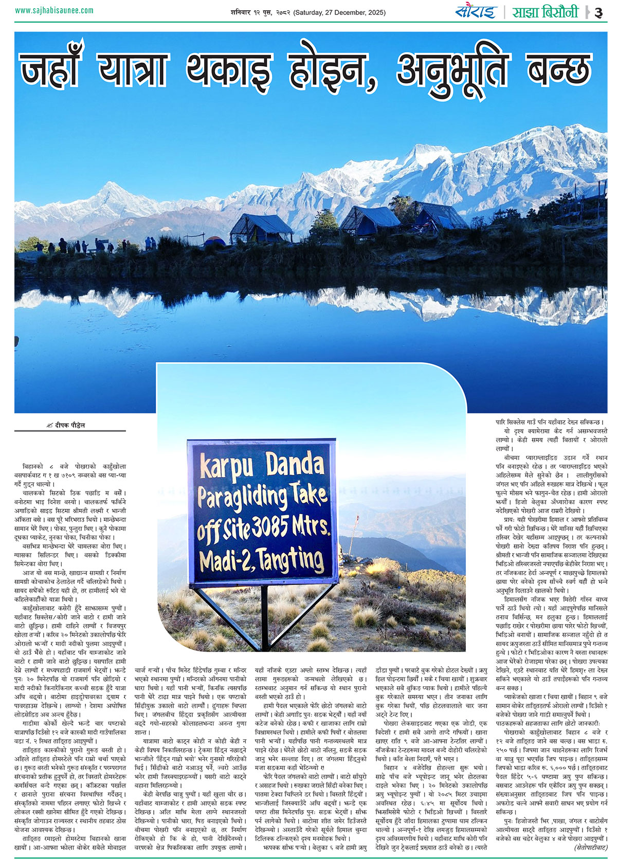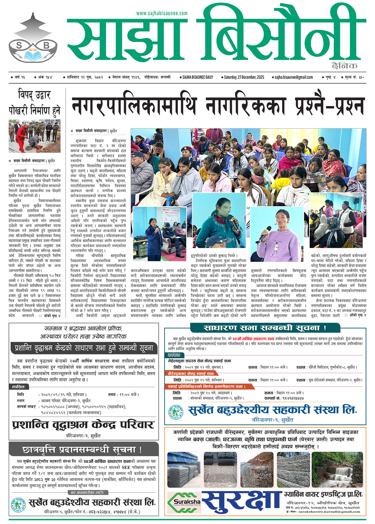 प्रकाशित मितिः   १२ पुष २०८२, शनिबार १२:१८