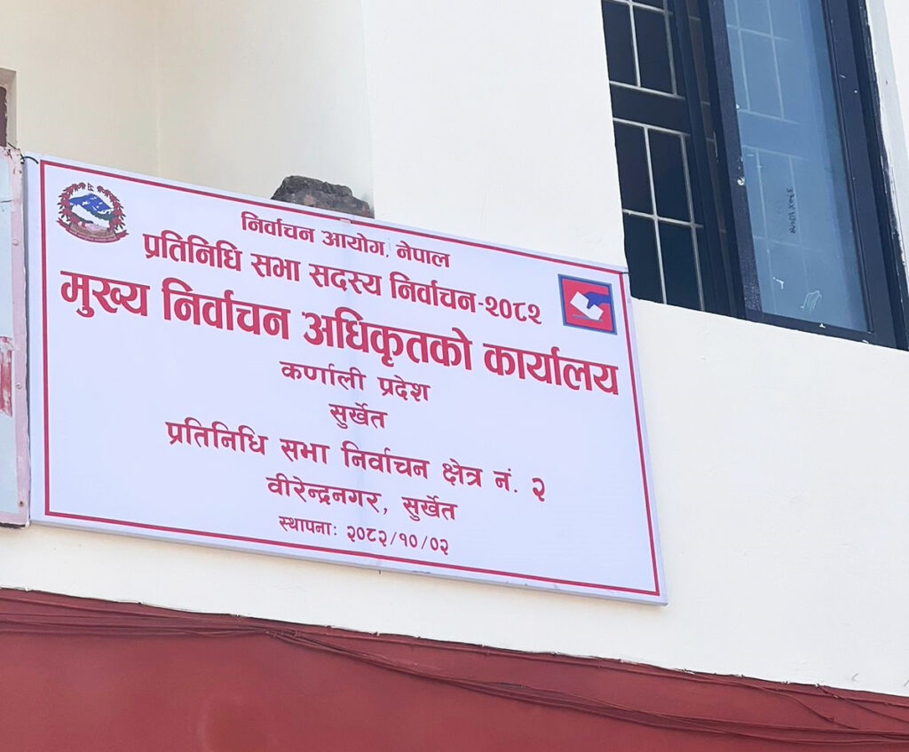 सुर्खेत: आगामी फागुन २१ गते हुने प्रतिनिधि सभा सदस्य निर्वाचनका लागि मुख्य निर्वाचन अधिकृतको कार्यालय स्थापना गरिएको छ । सुर्खेत क्षेत्र नं. २ को निर्वाचन अधिकृतको कार्यालय स्थापना गरिएको हो ।