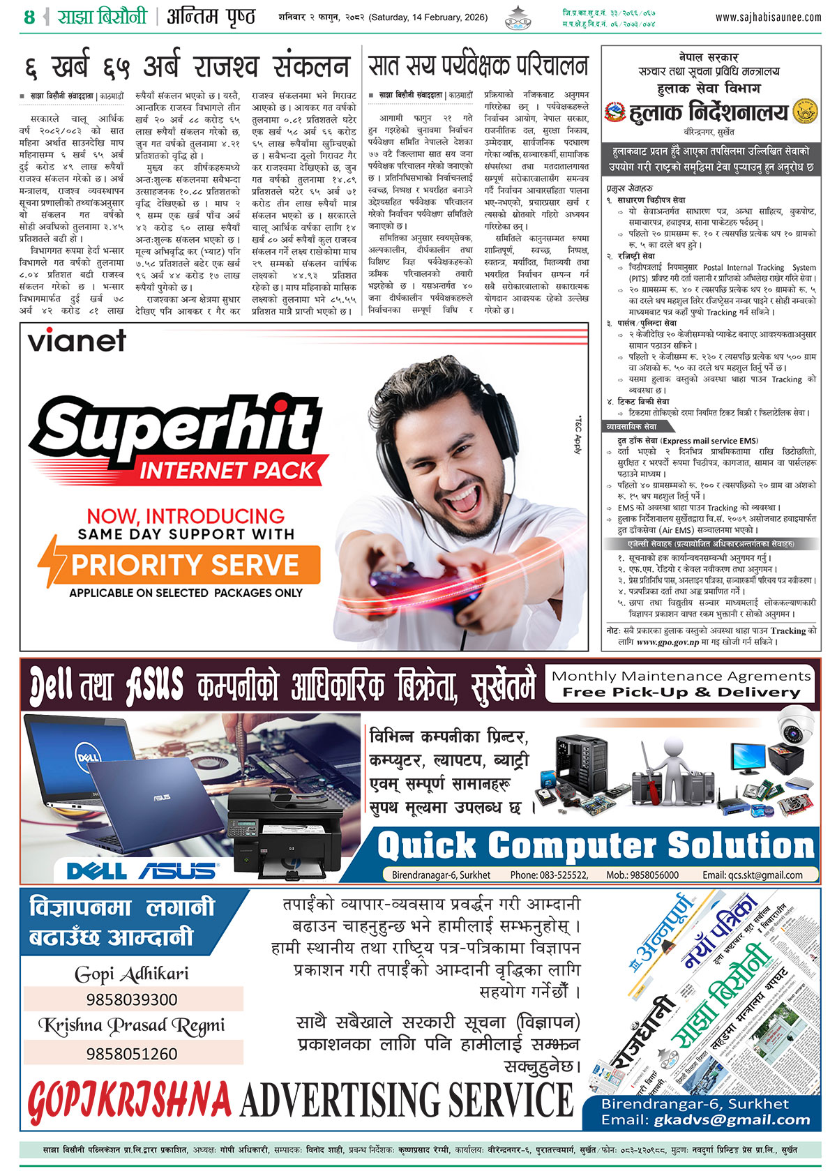 आजको इ–पेपर २०८२-११-०२
