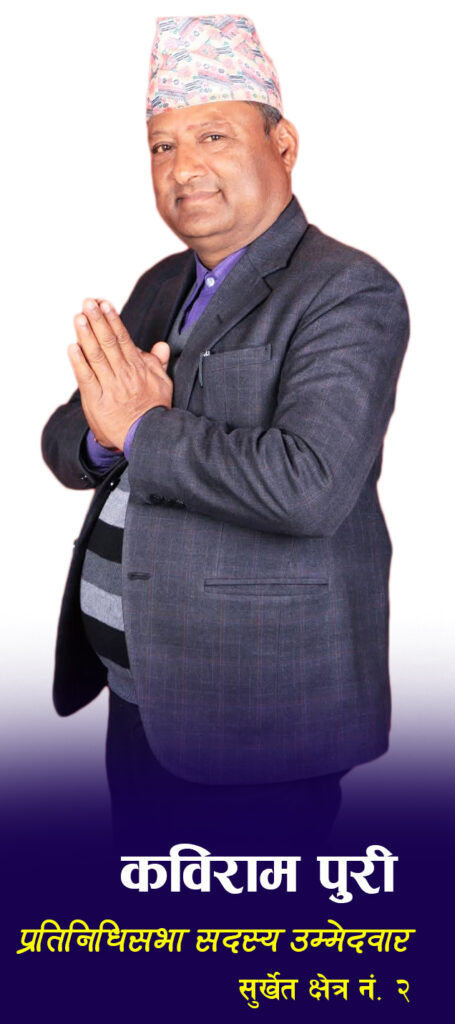 प्रतिनिधिसभा सदस्यको निर्वाचनका लागि राष्ट्रिय प्रजातन्त्र पार्टी (राप्रपा)बाट सुर्खेत क्षेत्र नंं २ मा कविराम पुरी उम्मेदवार बनेका छन् । उनी अहिलेको संविधान खारेज, नयाँ संविधान निर्माण र राजसंस्थाको पुनस्र्थापनालाई आफ्नो मुख्य चुनावी एजेन्डा बनाएर मत मागिरहेका छन् ।