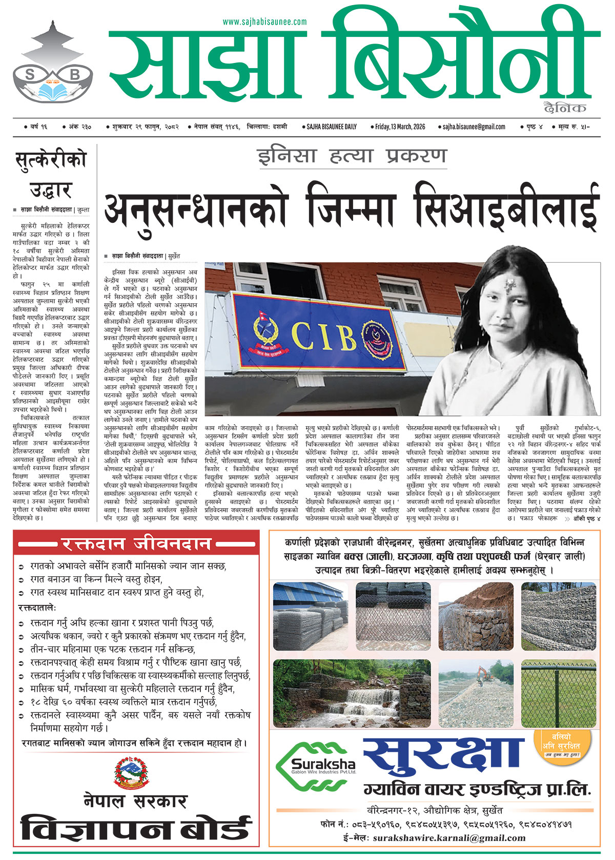 आजको इ–पेपर २०८२-११-२९