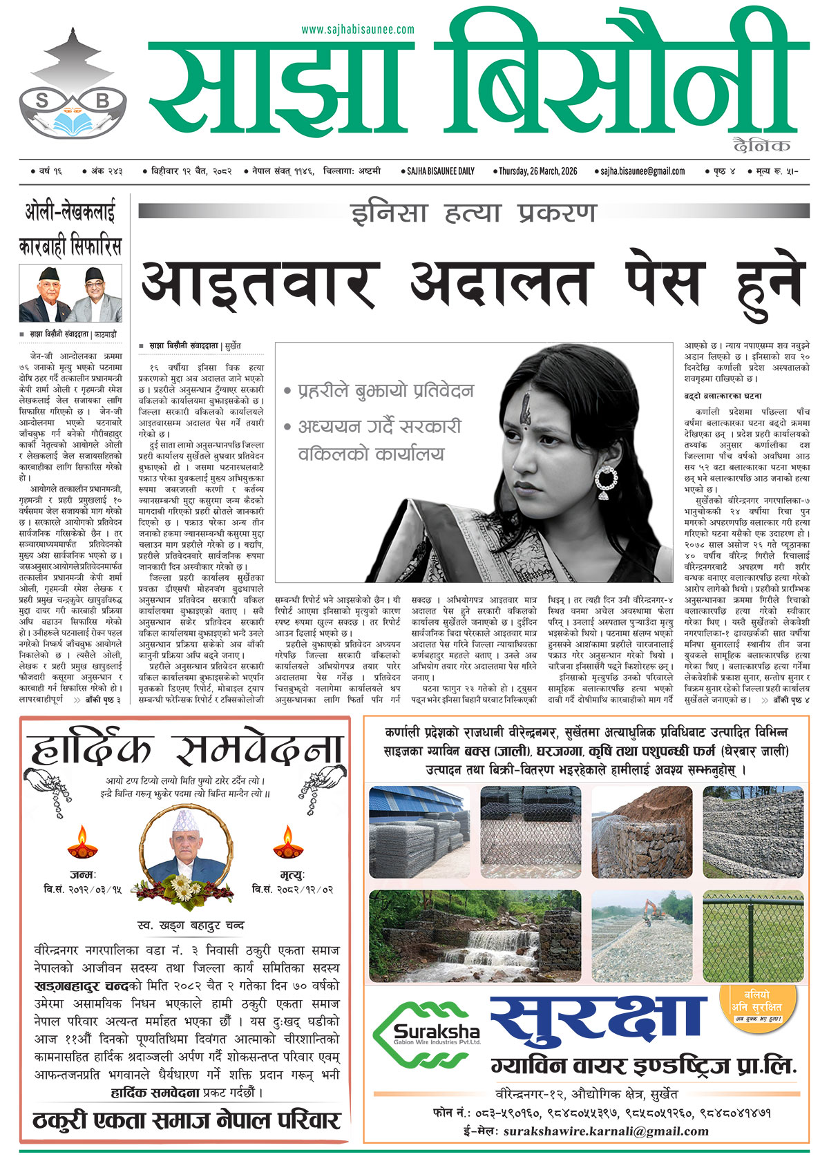 १२ चैत्र २०८२, बिहीबार १६:०५