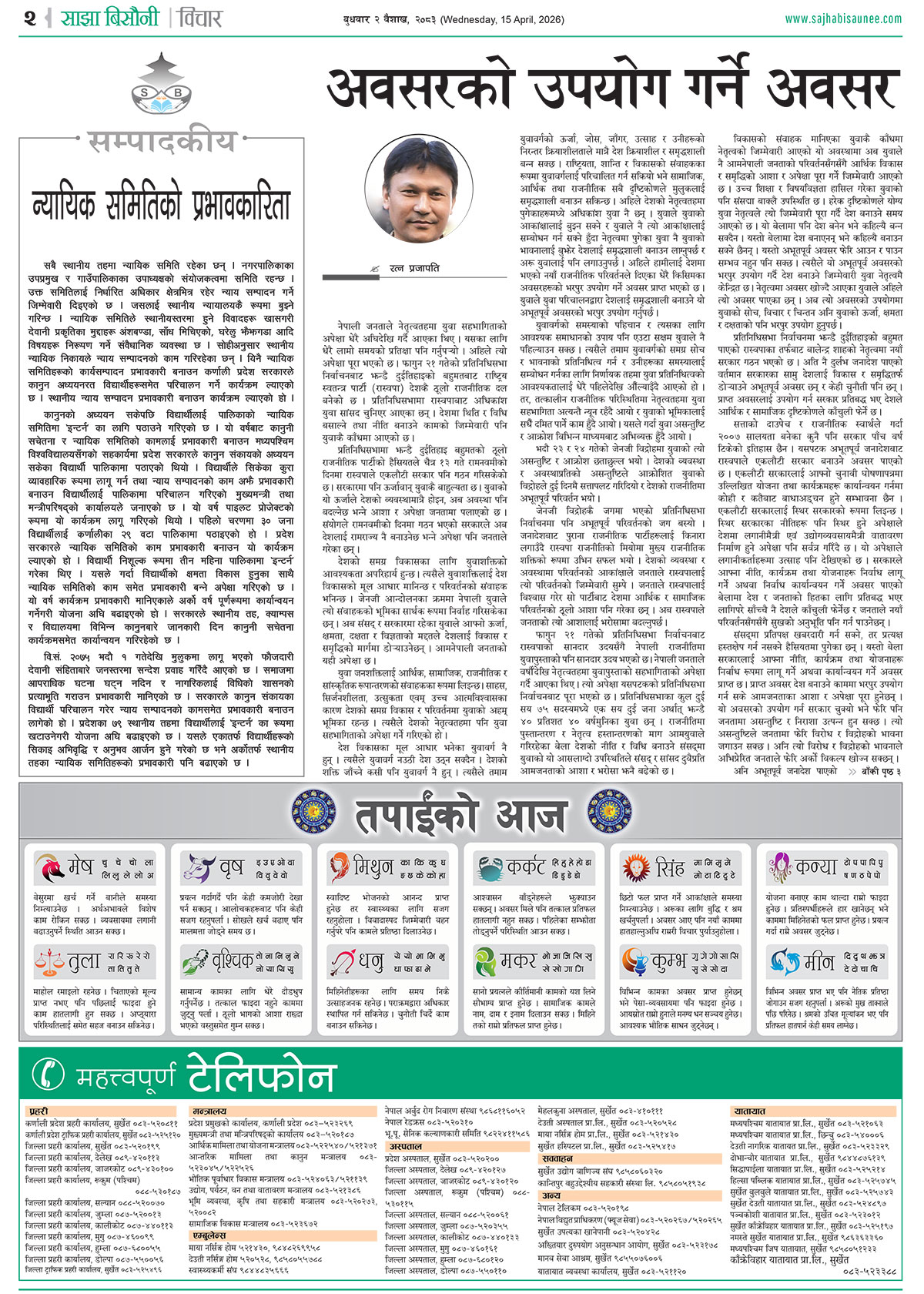 आजको इ–पेपर २०८३-०१-०२