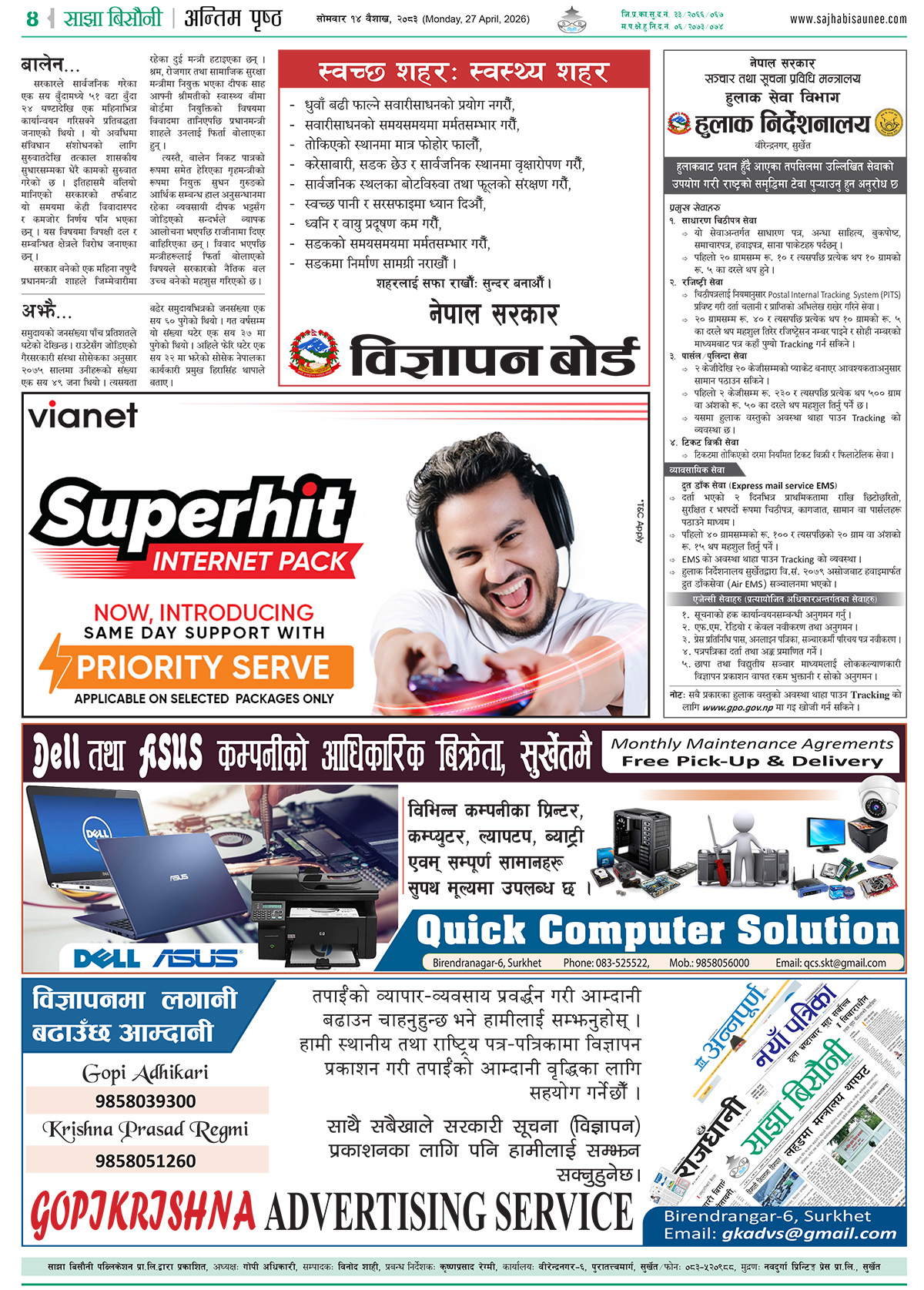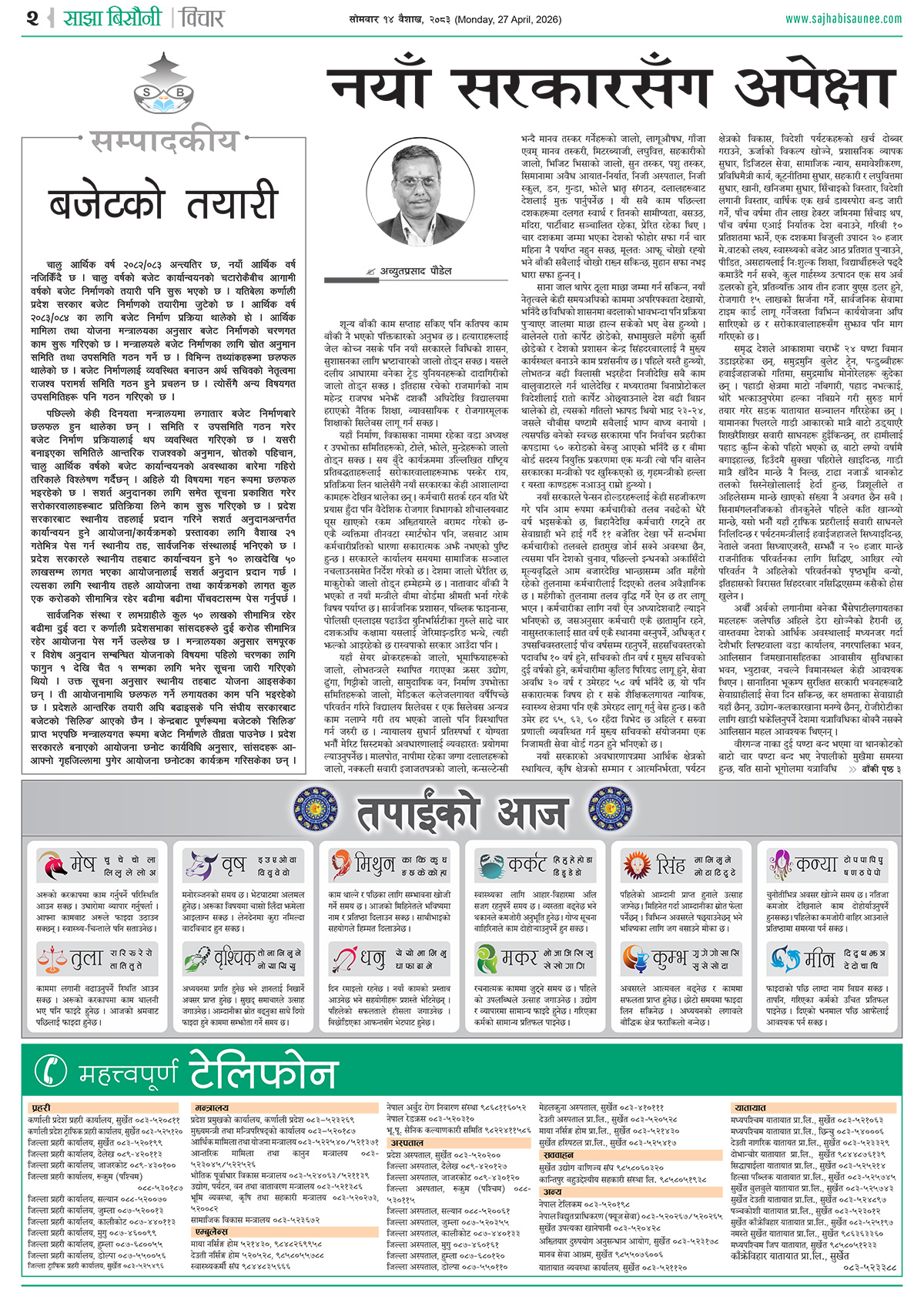 आजको इ–पेपर २०८३-०१-१४