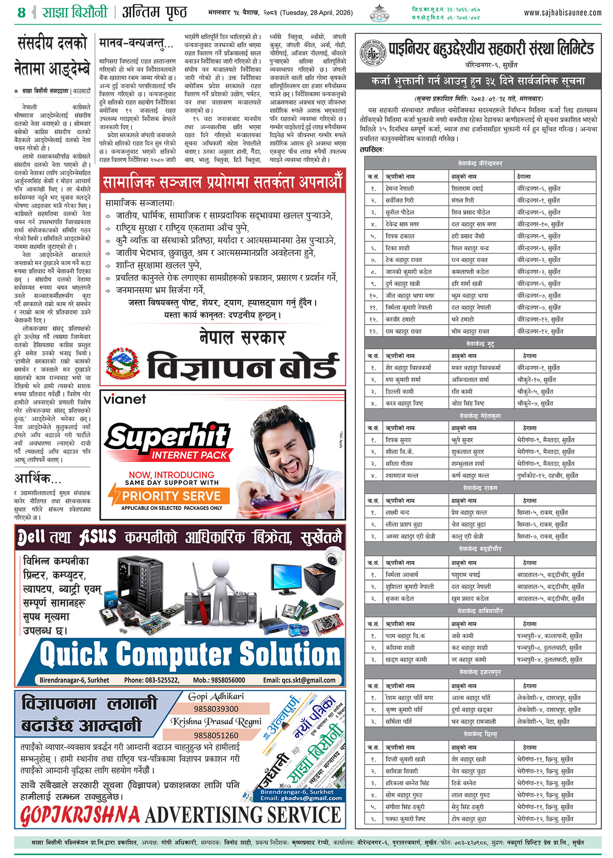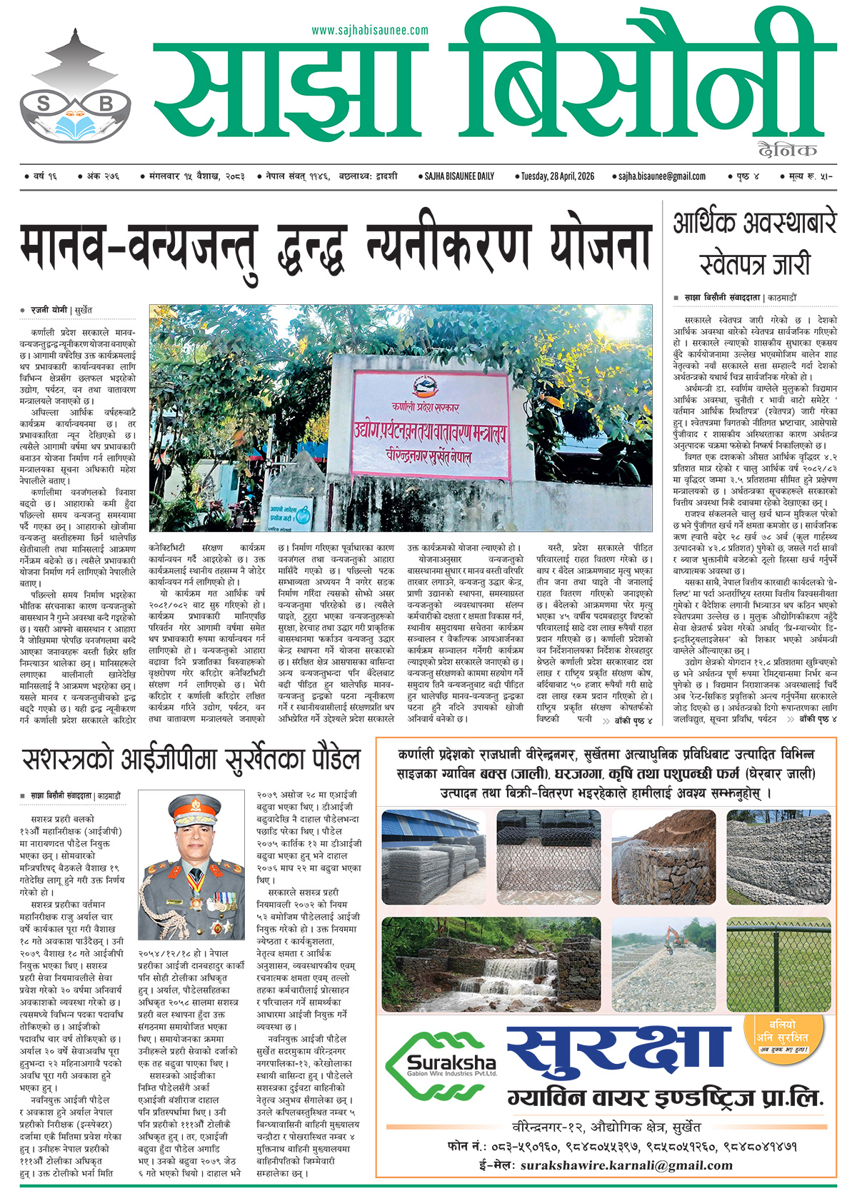 प्रकाशित मितिः   १५ बैशाख २०८३, मंगलवार १०:४१